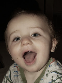 I put the food on the fork and he puts the fork right into his mouth, without even missing the target! No mommy! NO MORE PICTURES!!